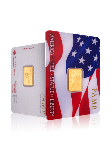 5g PAMP America- The Free-Statue- Of-Liberty Gold Bar (999.9)
