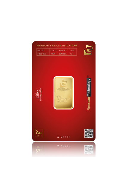 A 10 Gram Phoenix Edition Gold bar produced & manufactured by the Gold Bank®. This Bar is 24 karat Pure Gold 999.9 and weighs Exactly 10 Gram. Comes complete with certifcate embedded on the rear.