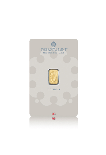 A 1 gram investment gold bar produced and manufactured by the royal mint. This is a britannia gold bar which comes packaged in a tamper proof blister card packaging and accompanied by a certificate embeded on the rear.