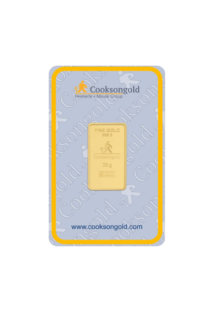 20 Gram Heimerle + Meule Investment Gold Bar. Manufactured and produced by the Heimerle + Meule refinery in germany and Approved by the London Bullion Market Association.
