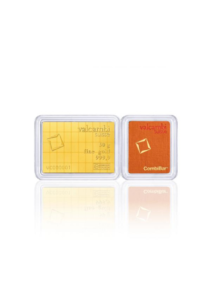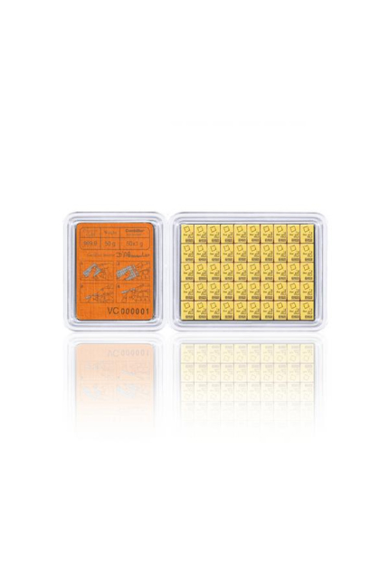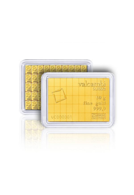 50 x 1g Gold CombiBar is manufactured by one of the largest LBMA certified Valcambi SA. The 50g Gold Combi Bar contains a full 50 grams of finest