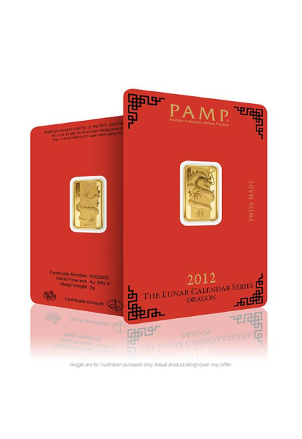 Home Shop Gold Bars 5g PAMP Lunar Year of the Dragon Gold Bar (2012)
