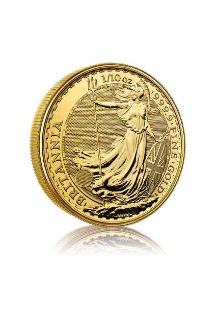 A 1/10th Ounce Gold Britannia produced by the Royal Mint. struck in 24 Karat Gold as of 2013. A very popular coin amongst British investors due to its Capital Gains Tax Free Status.