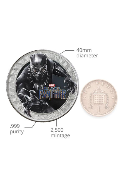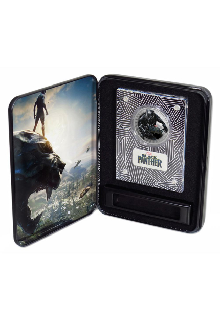 The Black Panther Proof silver coin struck in 1 ounce of pure Silver. Produced and manufactured by the Perth Mint, this coin is officially licensed by Marvel and weighs exactly 1 ounce (31.1 grams). Comes complete with collector tin and certificate of authenticity